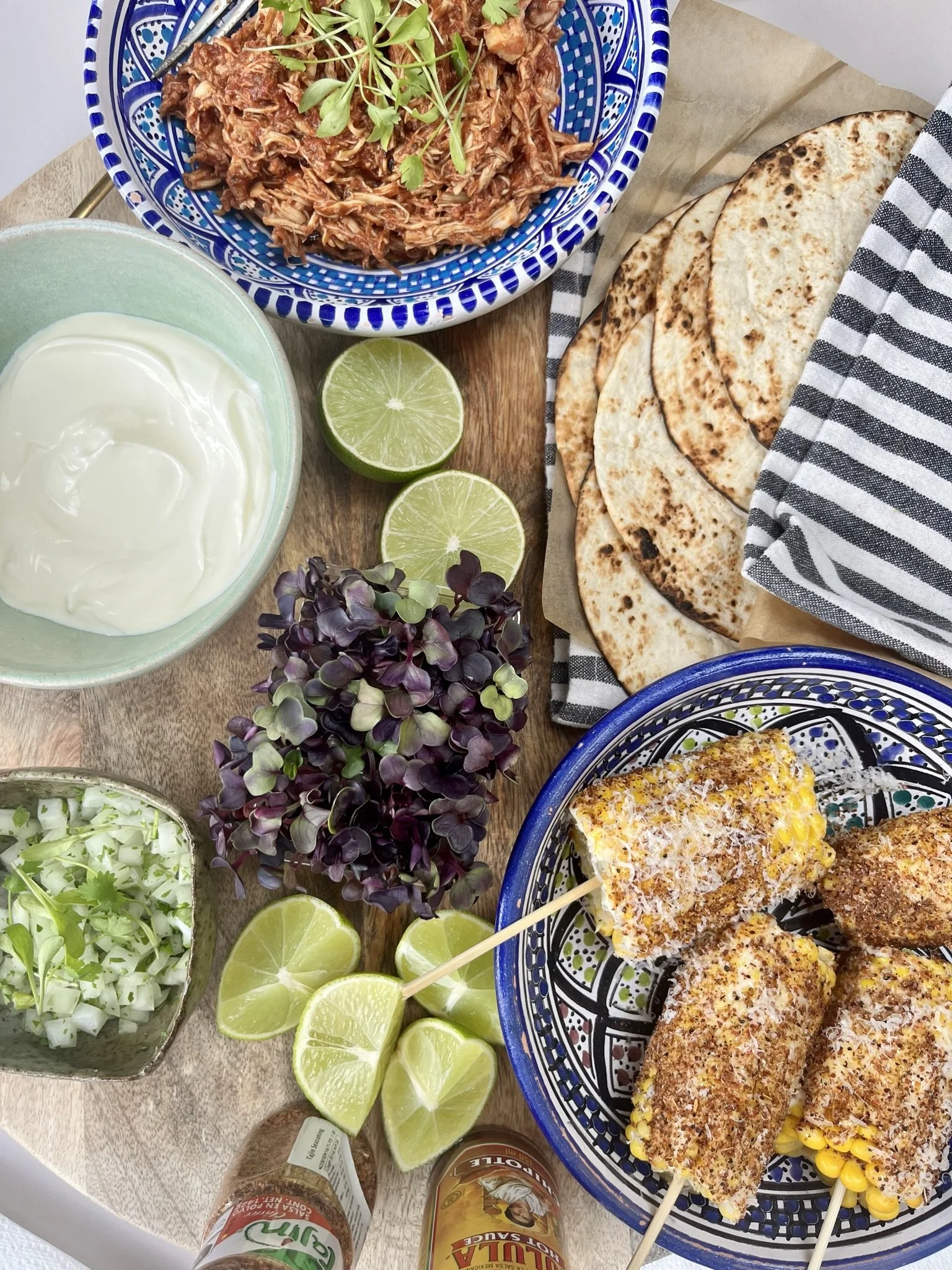 Once the chicken’s done you can then choose what to do with it, and the choices are endless. Serve over nachos with guacamole 🥑 and sour cream or in little tacos with fresh coriander.